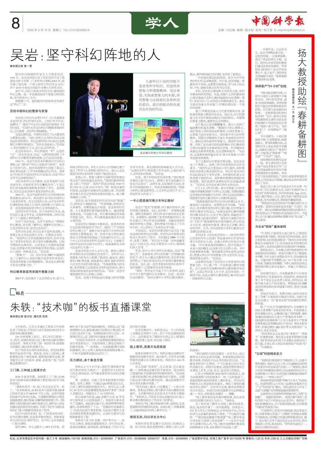 ——《中国科学报》 2020年3月10日 第8版 学人