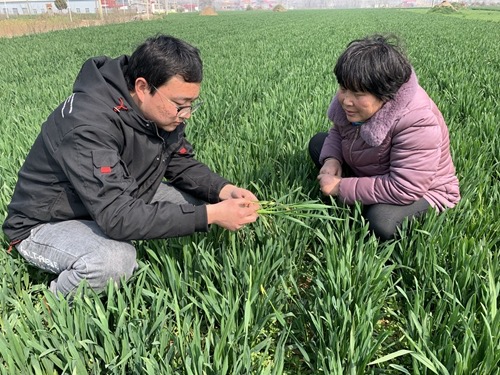 农学院教授郭文善与农业农村部工作组专家一起,奔赴江苏小麦主产区,深入田间地头查看小麦长势、土壤墒情等,调查了解当前春耕生产存在的实际问题,指导各地统筹抓好疫情防控和春耕生产。