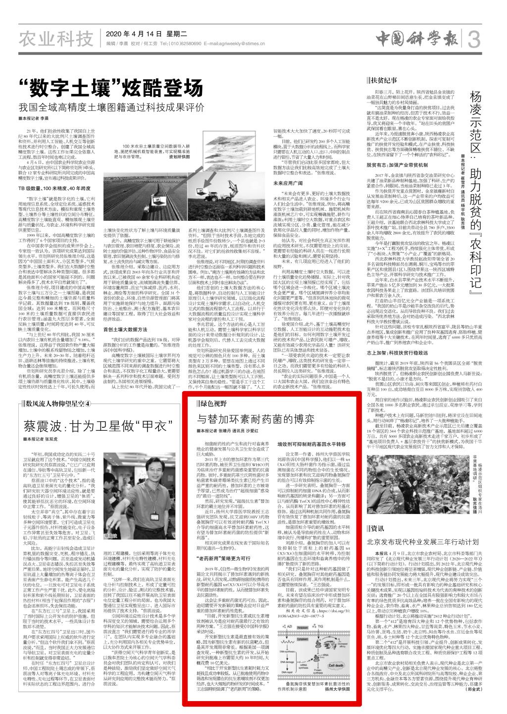 ——《中国科学报》 2020年4月14日 第3版 农业科技