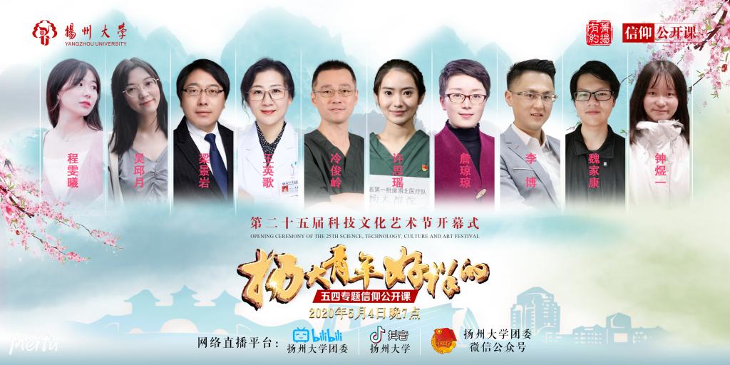 【交汇点新闻】“扬大青年,好样的!”:带你看一场人气超20万的信仰公开课直播! 交汇点讯 5月4日晚7点,扬州大学通过官方抖音平台和扬州大学团委B站平台同步线上直播了第25届科技文化艺术节开幕式暨“扬大青年,好样的!”五四专题信仰公开课活动。直播一小时在线观看人气超20万。