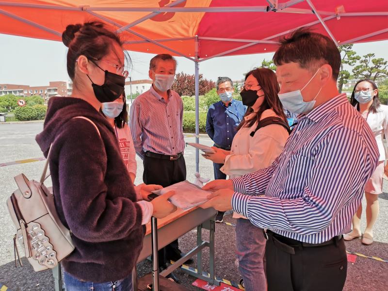 从5月13日早上,学生就开始陆续返校,在学校门口,辅导员老师和学生志愿者们耐心地等待每一位返校的学生,信息核对、体温检测、查验健康码、行李转运、复测体温,都有条不紊地进行;在宿舍区门口,学校公寓服务中心的管理人员也再次对返校的学生一一进行信息核对,办理登记入住手续,一整套入校流程都严格按照疫情防控的要求完成。