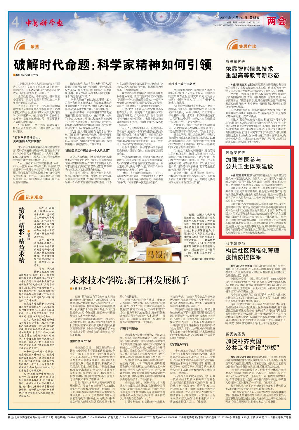 ——《中国科学报》 2020年5月29日 第4版 两会