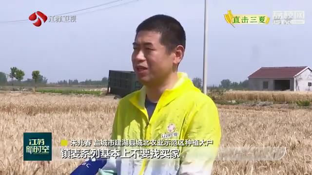 盐城市建湖县城北农业示范区种植大户朱兆春说:“去年其他品种在收购的时候出现自己要去找买家。镇麦系列基本上不要找买家,而且每斤价格和常规品种相比高5分钱左右。今年整个穗粒长势应该说整体比去年产量要增加10%左右,目前还是处于不愁卖的状态。”