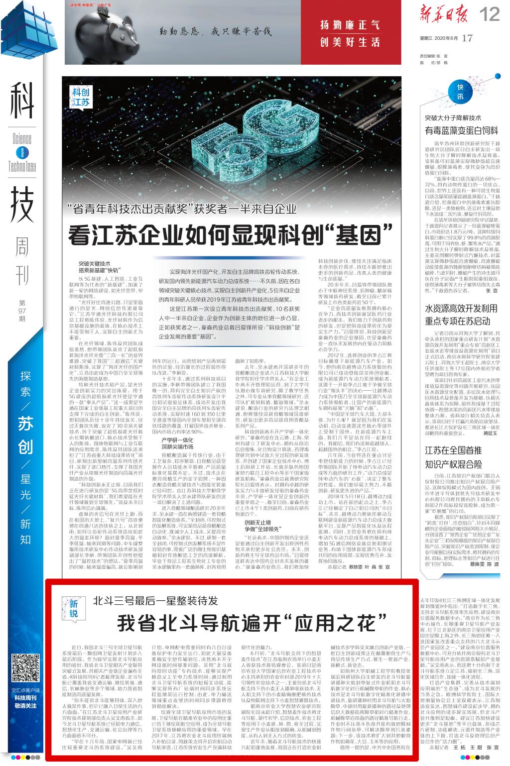 ——《新华日报》 2020年6月17日 第12版:科技周刊·苏创