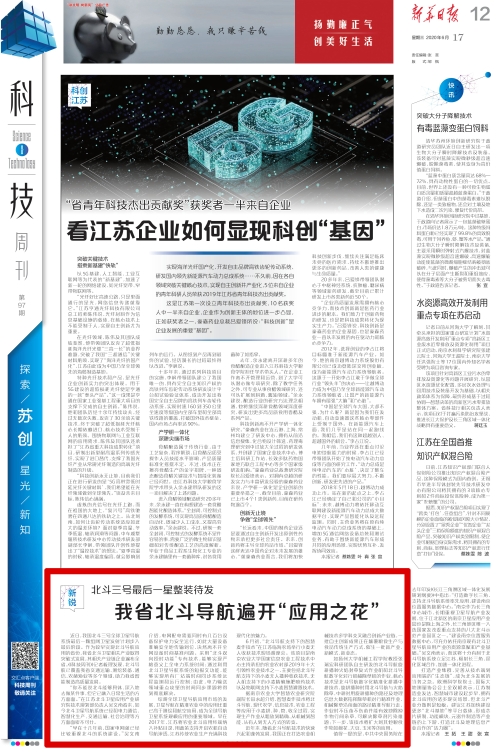 【新华日报】北斗三号最后一星整装待发 我省北斗导航遍开“应用之花”