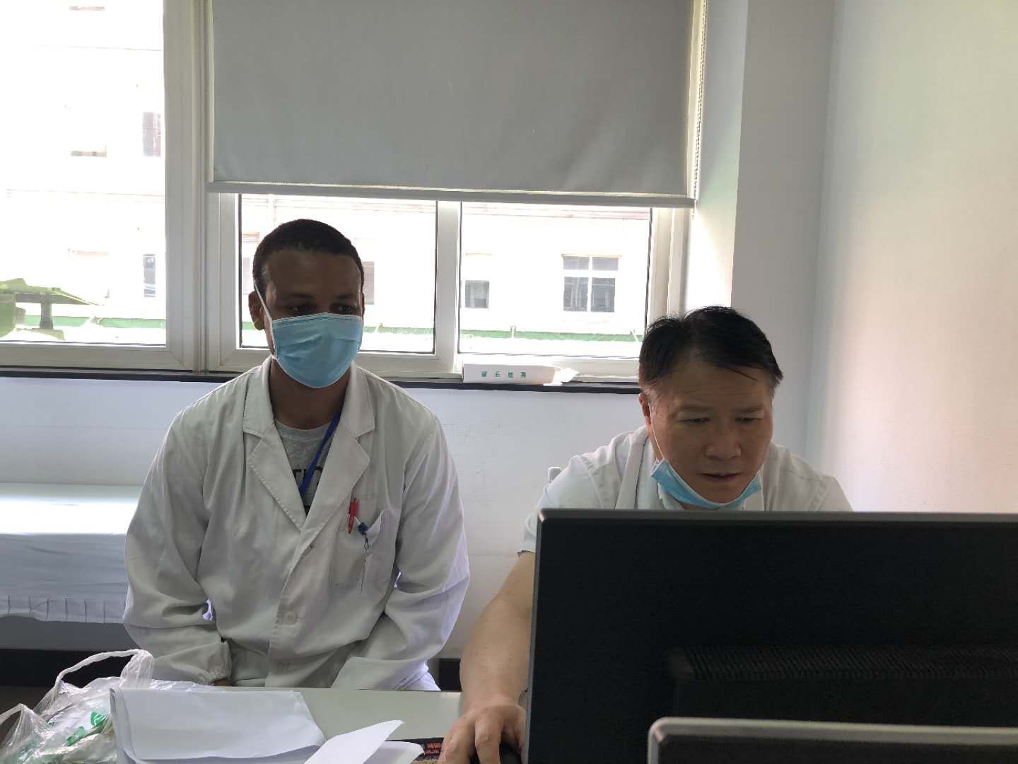 6月8日,赛德(左)和江苏省苏北人民医院普外科王道荣医师在门诊。扬州大学供图