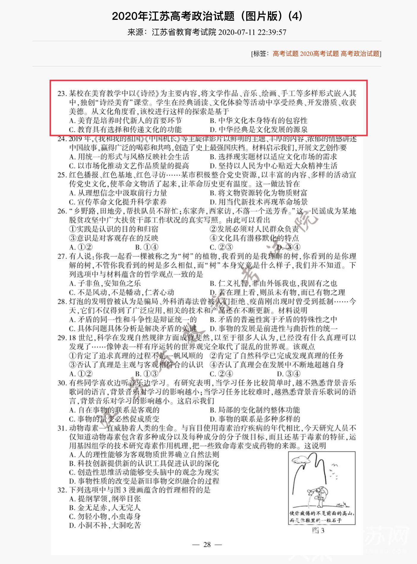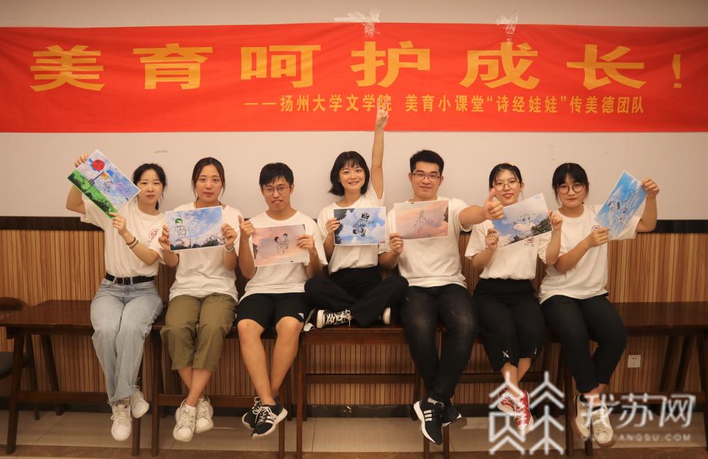 记者发现,江苏高考政治卷选择第23题题干中提到的“某校在美育教学中以《诗经》为主要内容,将文学作品、音乐、绘画、手工等多样形式嵌入其中,独创‘诗经美育’课堂。学生在经典诵读文化体验等活动中享受经典、开发潜质、收获美德……”所描述的正是扬州大学文学院经典传习社“诗经娃娃”美育课堂团队。