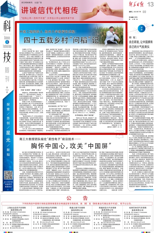 ——《新华日报》2020年7月22日 第13版:科技周刊·星光