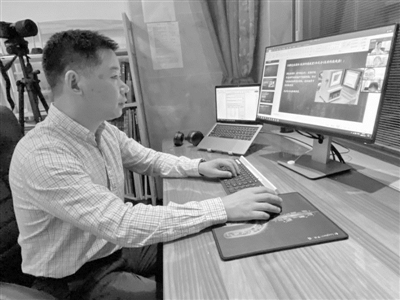 扬州大学兽医学院王捍东教授正在线上为本科生讲授“兽医临床诊断学”课程。陈克勤 摄