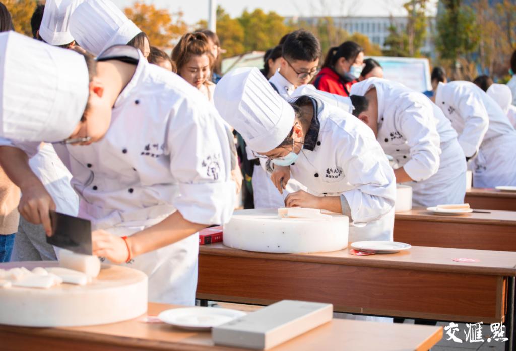 【交汇点】助力美食之都建设!扬大“准大厨”烹饪技能大比拼 交汇点讯 参赛学生右手持刀,左手按在切成两半的黄瓜上,伴随着刀刃利落的声音,切好的三条蓑衣黄瓜在盘子上呈宝塔堆砌,中间依次填补黄瓜片,一道考验刀工的蓑衣黄瓜单拼就呈现在观众眼前。11月11日下午,扬州大学旅游烹饪学院·食品科学与工程学院举办第十届“扬子餐饮杯”烹饪技能大赛,“准大厨”们现场比拼刀工、比拼创意,全面展示专业技能。