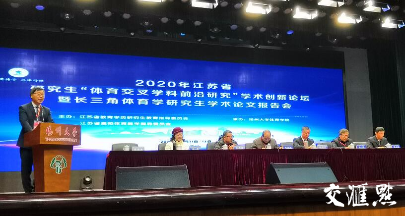 【交汇点】扬州大学举办江苏省研究生“体育交叉学科前沿研究”学术创新论坛交汇点讯 12月11-12日,2020年江苏省研究生“体育交叉学科前沿研究”学术创新论坛暨长三角体育学研究生学术论文报告会在扬州大学举行。国务院学位委员会心理学评议组成员、北京大学心理与认知科学学院长江学者周晓林教授,扬州大学副校长陈国宏教授,江苏省教育学类研究生教育指导委员会副主任颜军教授,江苏省教育学类研究生教育指导委员会秘书长邵泽斌教授,教育部“长江学者奖励计划”青年学者陈爱国教授,中国体育科学学会期刊工作委员会副主任、《体育与科学》杂志主编程志理教授以及来自长三角地区的浙江大学、南京大学、同济大学、东南大学、华东师范大学、上海体育学院等21所高校200多名专家学者、体育学研究生参加论坛。