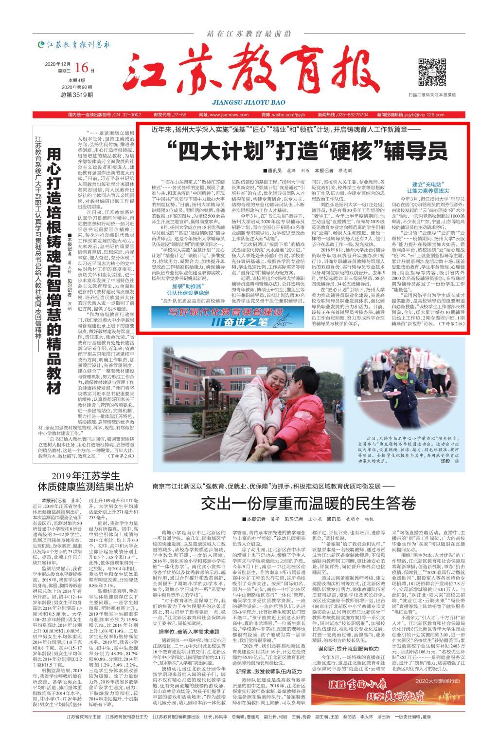 ——《江苏教育报》 2020年12月16日 第1版:新闻头条