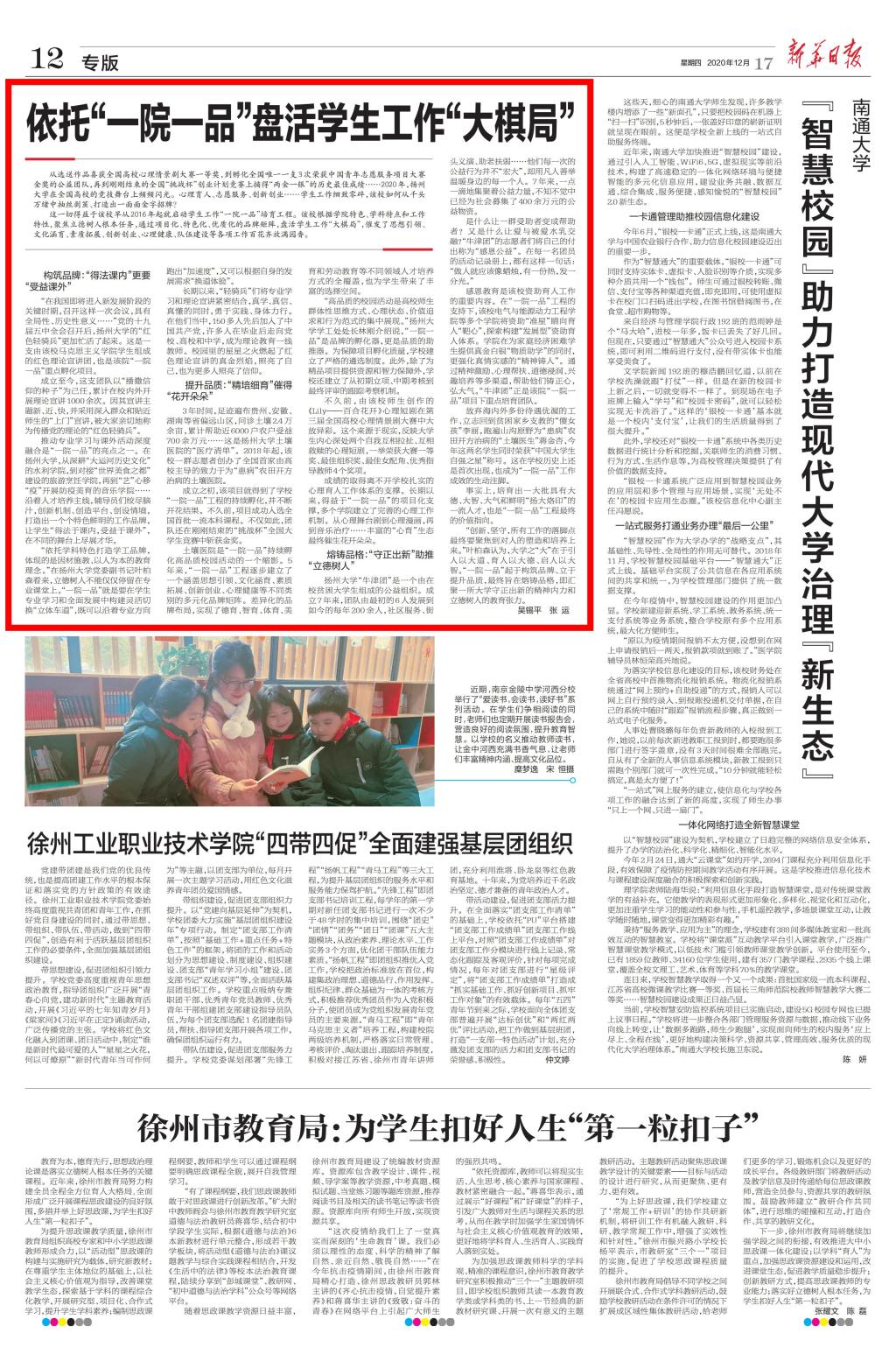 【新华日报】依托“一院一品”盘活学生工作“大棋局”
