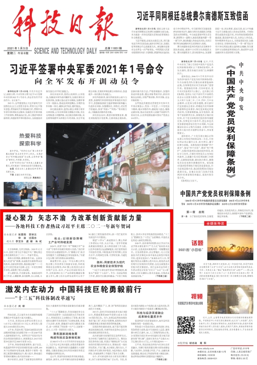 ——《科技日报》2021年1月5日 第01版:今日要闻