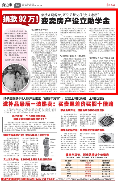 【扬子晚报】捐款92万!教授爸妈辞世,两兄弟帮父母“完成遗愿”