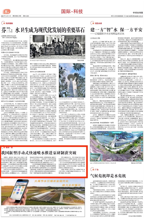 【中国水利报】我国新型浮动式快速喷水推进泵研制获突破