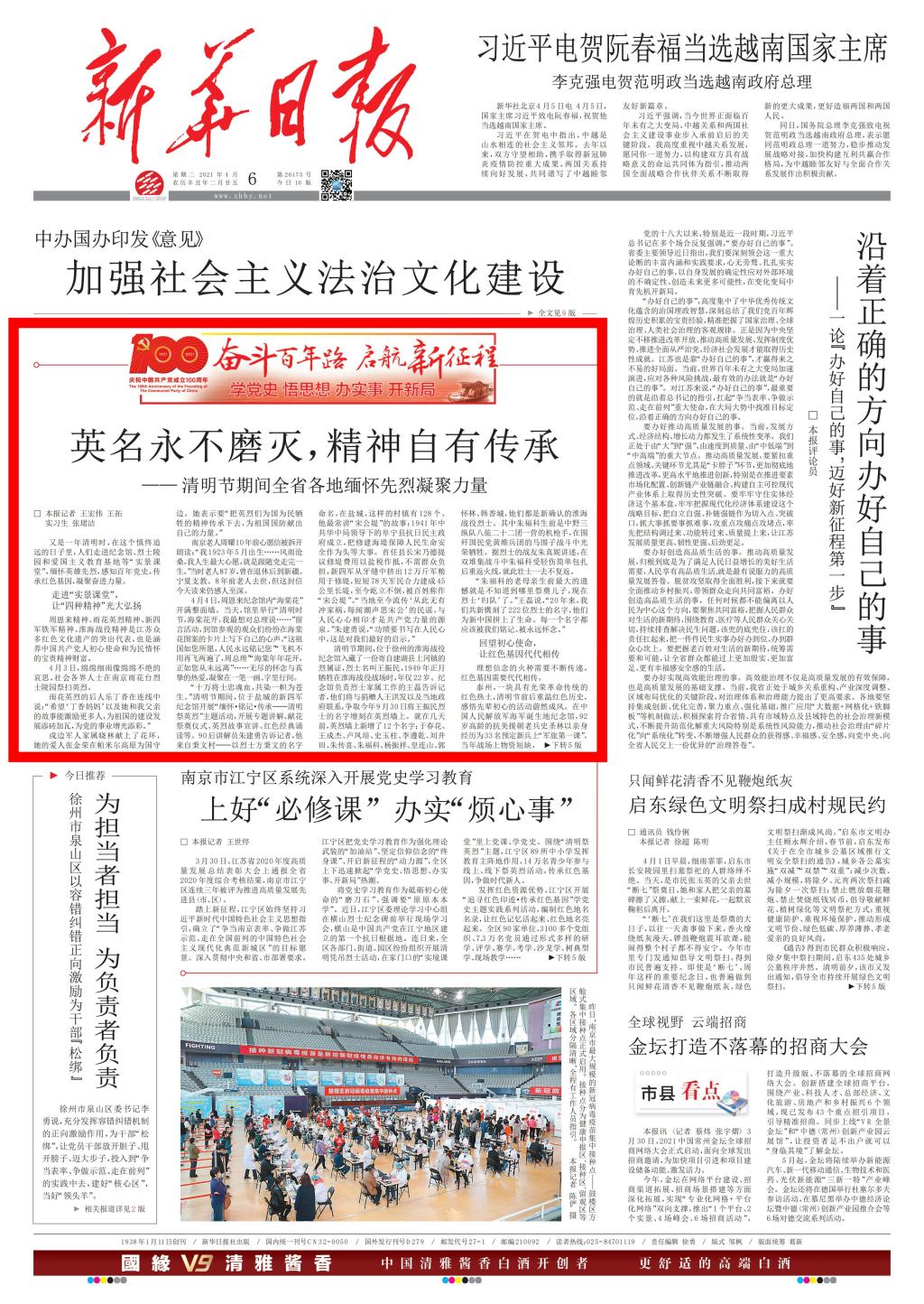 ——《新华日报》 2021年4月6日 第1版