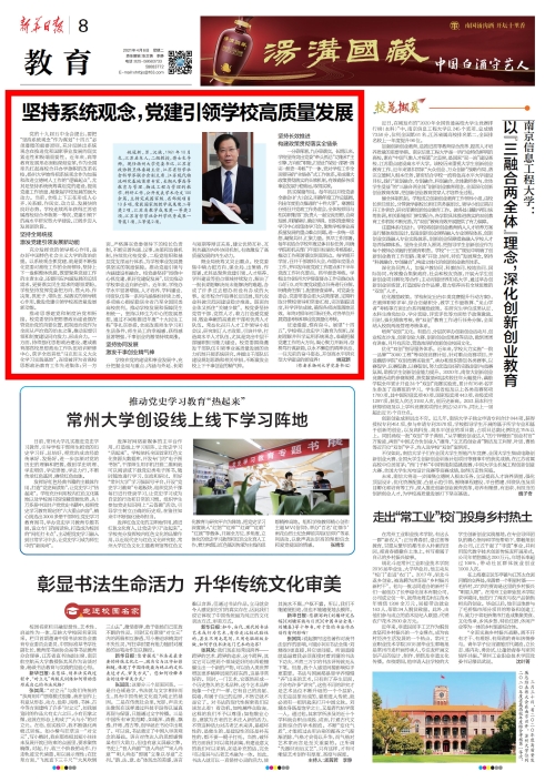 党的十九届五中全会提出,要把“坚持系统观念”作为谋划“十四五”必须遵循的重要原则,充分反映出系统观念在推进党和国家事业发展的现实紧迫性和极端重要性。近年来,高等教育发展形态面临深刻变革,作为全国率先扛起高校合并办学旗帜的改革名校,扬州大学始终把系统观念作为加强和改进立德树人工作的“逻辑起点”,尤其是坚持系统统筹谋划党的建设,提高党建工作质量,凝聚起学校发展的强大动力。当前,全校上下正在形成人心齐、关系顺、作风实、动力足、发展快的良好态势。学校连续两年获得江苏省属高校综合考核第一等次,党建引领下的高水平研究型大学建设,正阔步迈入发展新阶段。