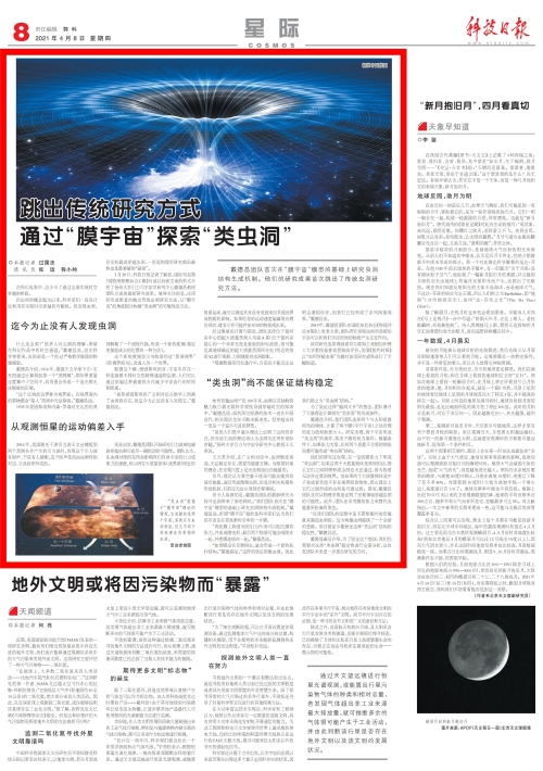 【科技日报】跳出传统研究方式通过“膜宇宙”探索“类虫洞”
