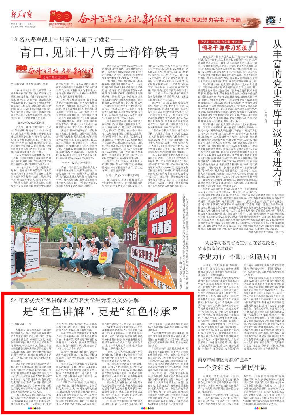 ——《新华日报》 2021年4月14日 第3版