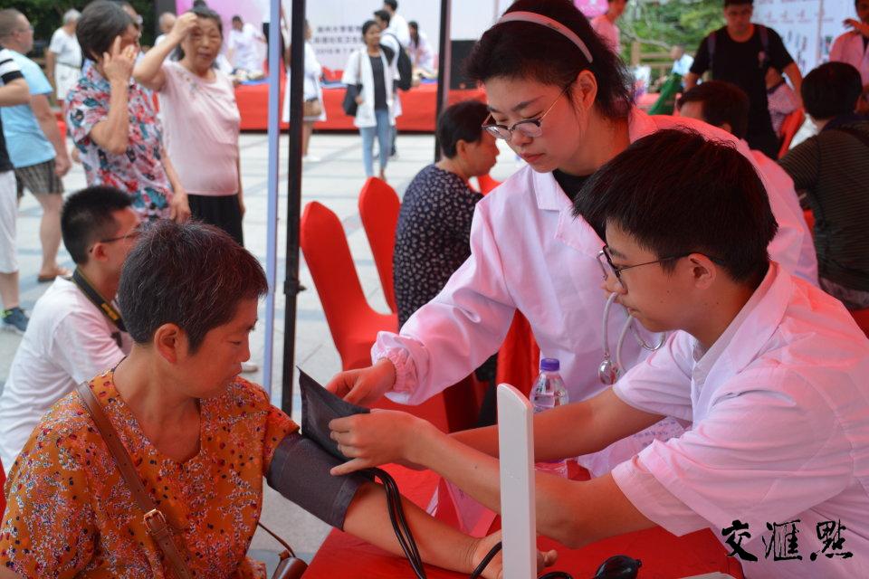 医者仁心,甘愿奉献,义诊精神深深地烙在每位医学学子心中。“奶奶,您的血压是160/90,血压有点高。您在平时一定要注意适当运动,并记得定期服用降压药哦。”居民李奶奶一边听着毕业生屈芸的叮嘱,一边高兴地握住了屈芸的手,久久不愿松开。据了解,扬州大学医学院每年都组织学生前往扬州市20家社区医院和扬州市外7家基层医院进行为期近半个月的暑期社会实践,走进社区、医院为居民建立健康档案、测量血压血糖、免费推拿、健康咨询讲座等内容的义诊活动,在这些活动中总能看到关工委老同志们的身影,正是他们的言传身教,为大学生们树立了优秀的榜样。