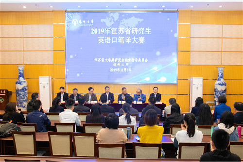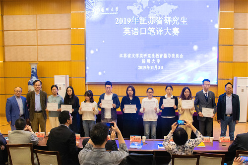 11月2日至3日,2019年江苏省研究生英语口笔译大赛在我校举行。副校长陈国宏出席开幕式并致辞。副校长俞洪亮出席颁奖典礼,为获奖选手颁奖并合影留念。来自省内各高校外国语言文学类在读全日制研究生以及带队教师、专家评委共约140人参加大赛。