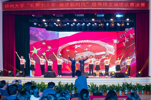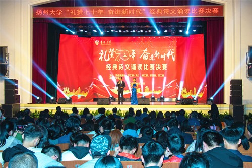 “礼赞70年,奋进新时代”经典诗文诵读比赛由宣传部、学工部(处)、研工部、团委、关工委主办。11月初,大赛初赛分别在两个赛区顺利完成,本次决赛由文学院承办。来自各学院的1500余名师生代表观看比赛。