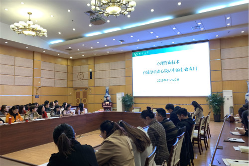 11月20日上午,学校在荷花池校区教学主楼二楼多功能厅举行辅导员谈心谈话工作坊。