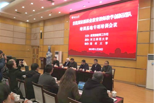 11月28日,由教育部教师工作司主办、河北师范大学承办、我校协办的首批国家级职业教育教师教学创新团队培训基地专项培训会议,在荷花池校区教学主楼多功能厅召开。副校长刘巧泉出席会议并致辞。