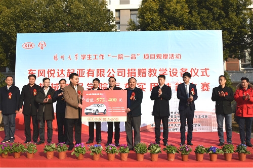 仪式上,东风悦达起亚汽车有限公司向机械工程学院捐赠3辆汽车(总价值572400元),用于教学和大学生科创活动。在“一院一品”项目观摩活动中,学院开展了“匠心巧手,安全我有”汽车实用技能大赛。