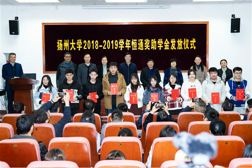 据悉,2018年12月恒通建设集团与我校签订《扬州大学恒通奖助学金捐赠协议书》,自2019年至2023年,每年捐赠40万元,用于奖励资助我校土木工程、工程管理、建筑环境与能源应用工程、建筑电气与智能化、建筑学、给排水科学与工程、交通工程、风景园林、工商管理类、金融学、统计学等专业学生。
