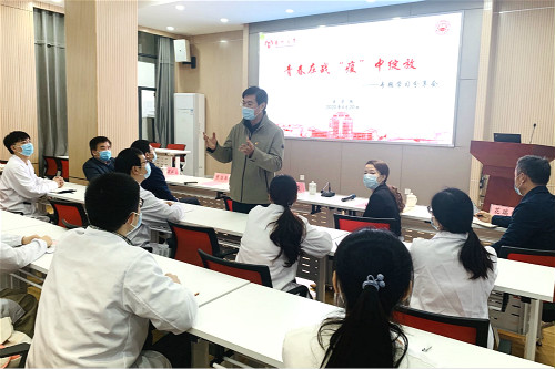 4月20日下午,医学院开展“青春在战‘疫’中绽放”专题学习分享会。校党委副书记叶柏森出席活动并讲话。