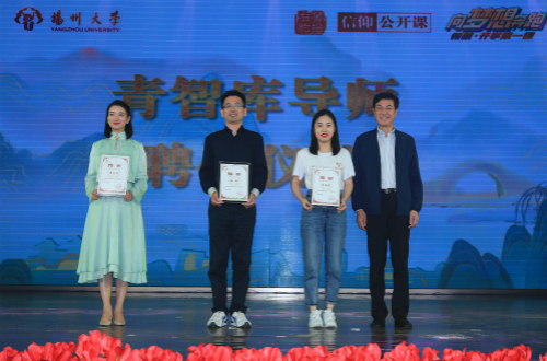 活动现场还进行了扬州大学“青智库”导师聘任仪式。全体嘉宾、扬州大学研究生支教团历届队长以及第13期菁英培训营的全体学员共同朗诵诗歌《青春的浪花拍拍你》,并创新推出主题视频《向梦想奔跑》,为同学们送去青春的祝福,希望同学们能在时代的浪潮上勇往直前,绽放最美的浪花。