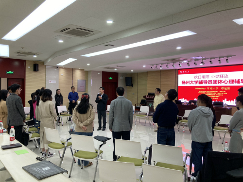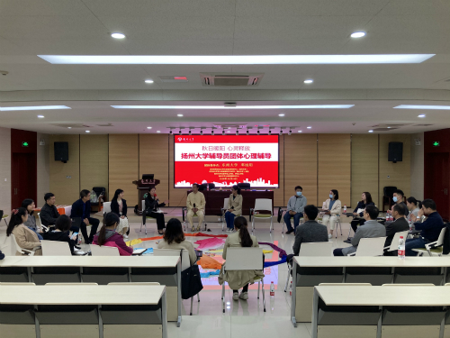 10月16日下午,学校在瘦西湖校区新教学楼三楼报告厅举办“秋日暖阳·心灵释放”辅导员工作坊,东南大学心理健康教育中心主任邓旭阳教授应邀来校开展团体心理辅导活动。校党委副书记叶柏森出席活动。