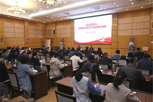 10月21日下午,党群总支在荷花池校区主楼多功能厅开展教职工集体理论学习,举行警示教育活动。校纪委书记、派驻监察专员周琴应邀作专题报告。