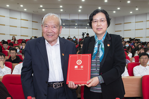陈耀为吴登云颁发“兼职德育辅导员”聘书。她希望同学们不忘学医初心,厚植家国情怀;锤炼过硬本领,矢志艰苦奋斗;勇担时代重任,奉献青春大爱,将“爱岗敬业,情系患者,精益求精,甘于奉献”的吴登云精神不断传承和发扬下去。