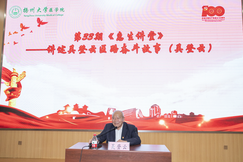 “100位新中国成立以来感动中国人物”,全国优秀共产党员、最美奋斗者、全国五一劳动奖章、白求恩奖章等荣誉获得者,我校著名校友吴登云做客医学院第33期惠生讲堂,为师生讲述医路上的奋斗故事。随后,医学院艺术团诗朗诵《向着光亮那方》致敬医护工作者。此外,吴登云带领在场党员师生一起重温入党誓词。