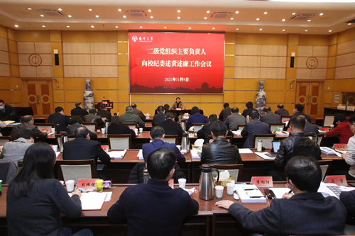 11月9日,学校在荷花池校区教学主楼二楼多功能厅召开二级党组织主要负责人向校纪委述责述廉工作会议。校纪委书记、监察专员周琴主持会议并讲话。