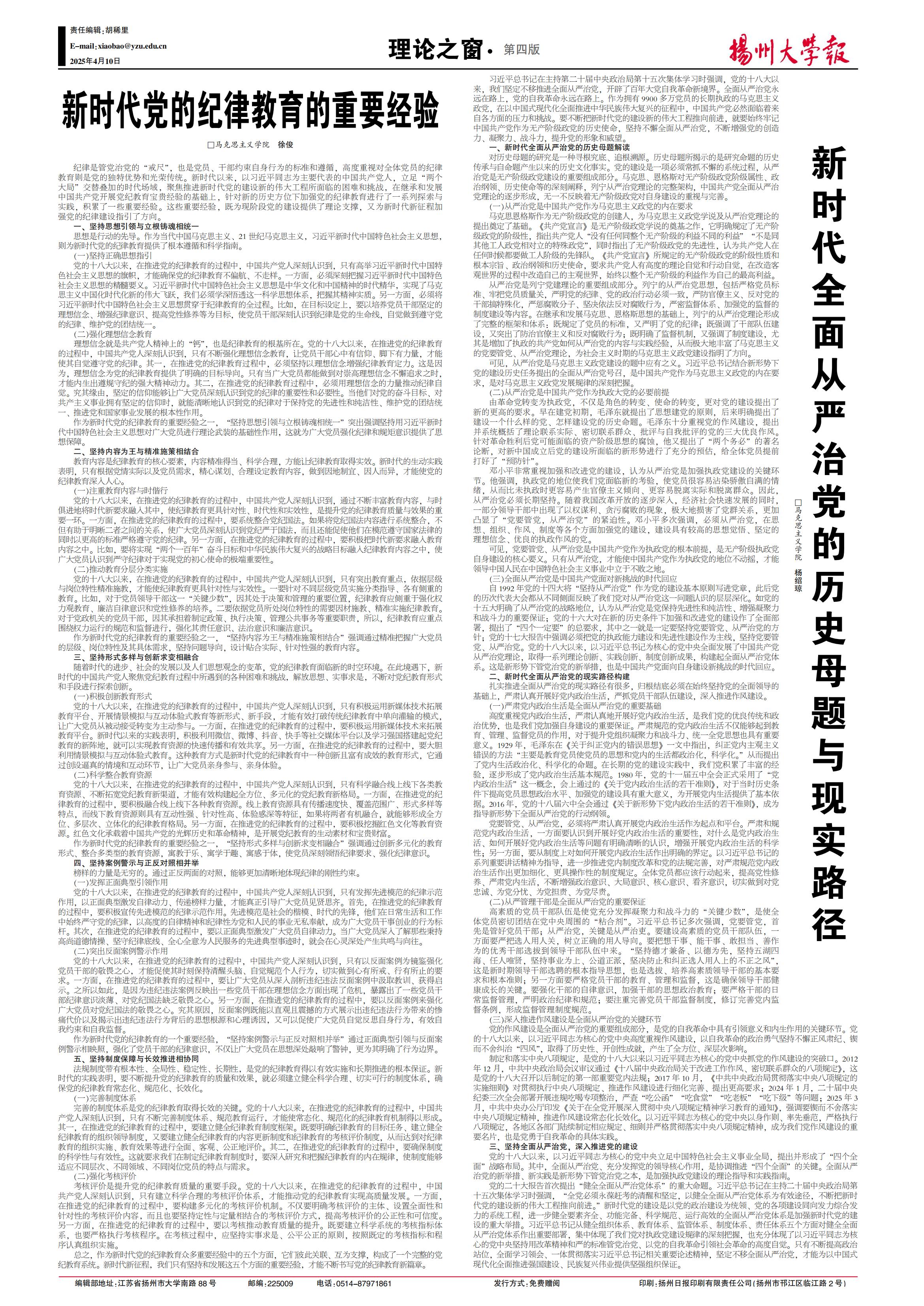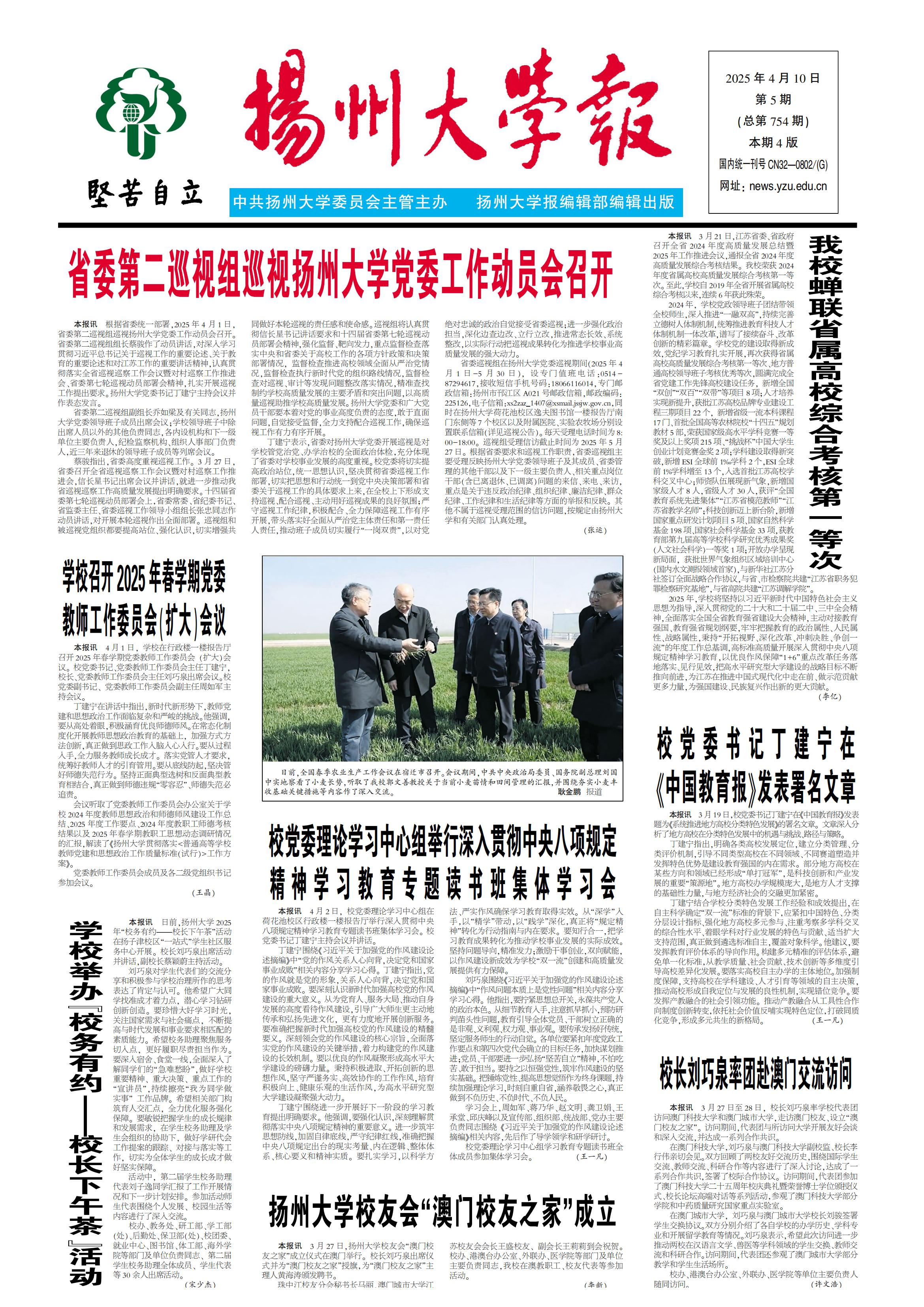 《扬州大学报》第754期(2025年04月10日)