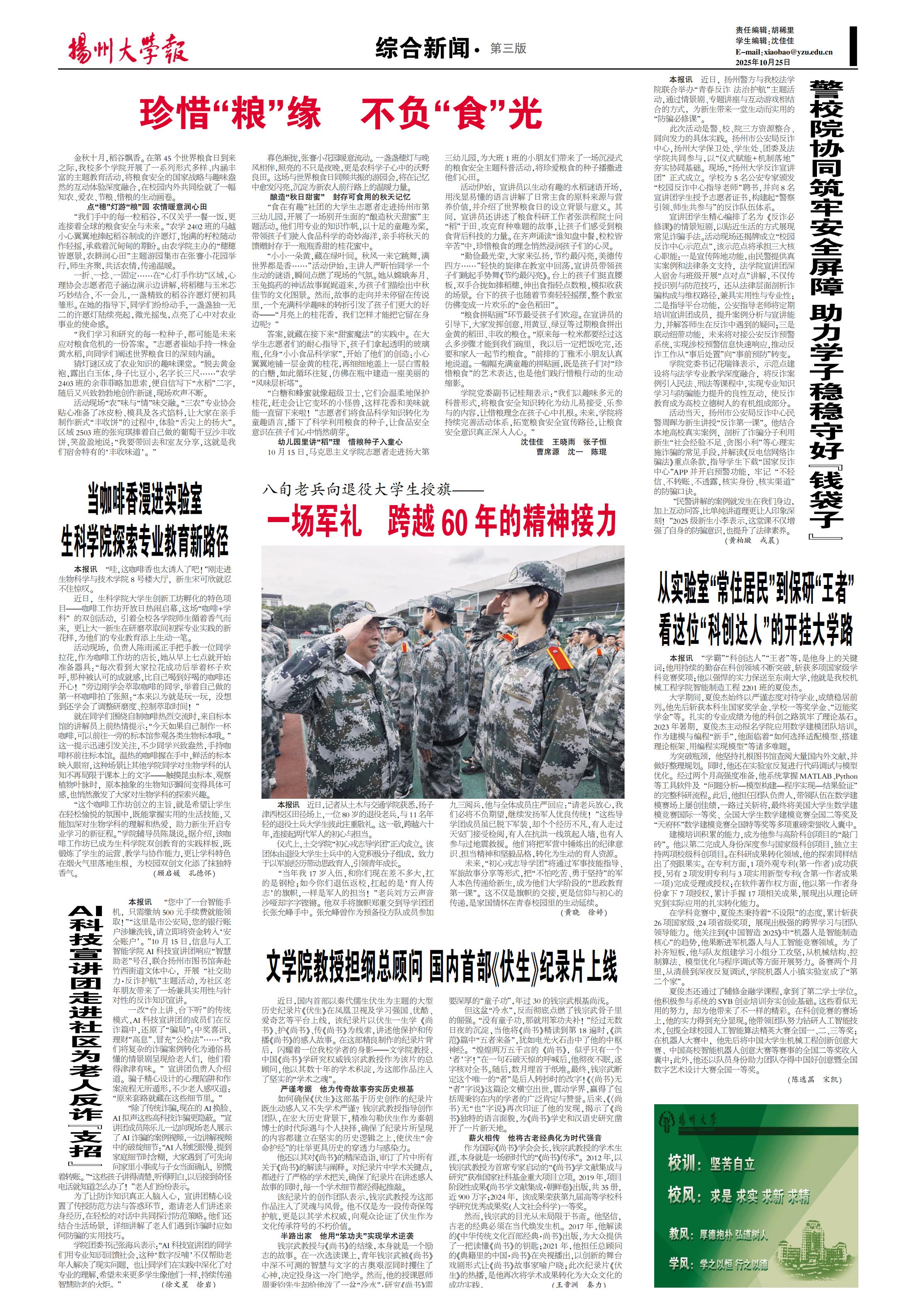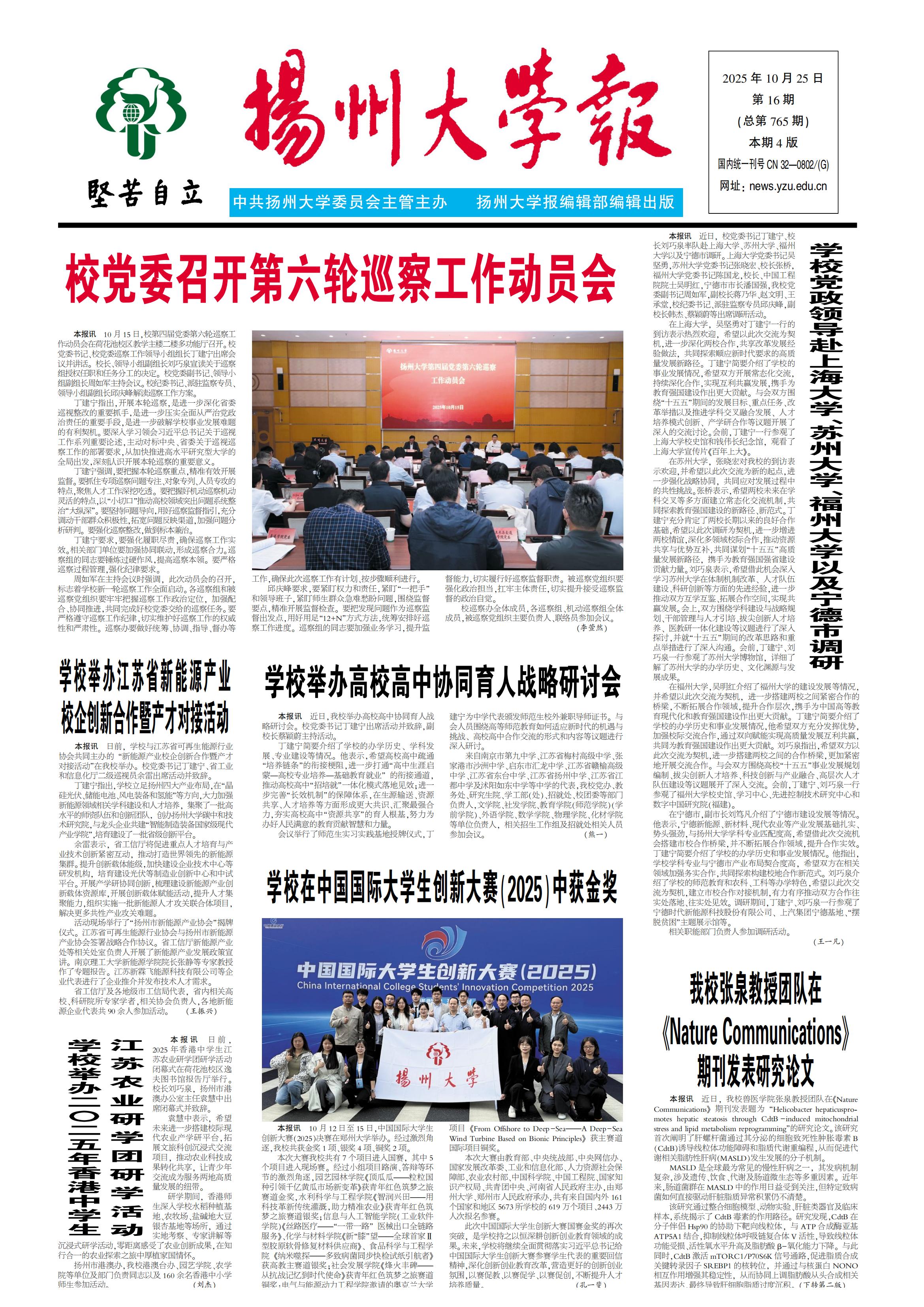 《扬州大学报》第765期(2025年10月25日)