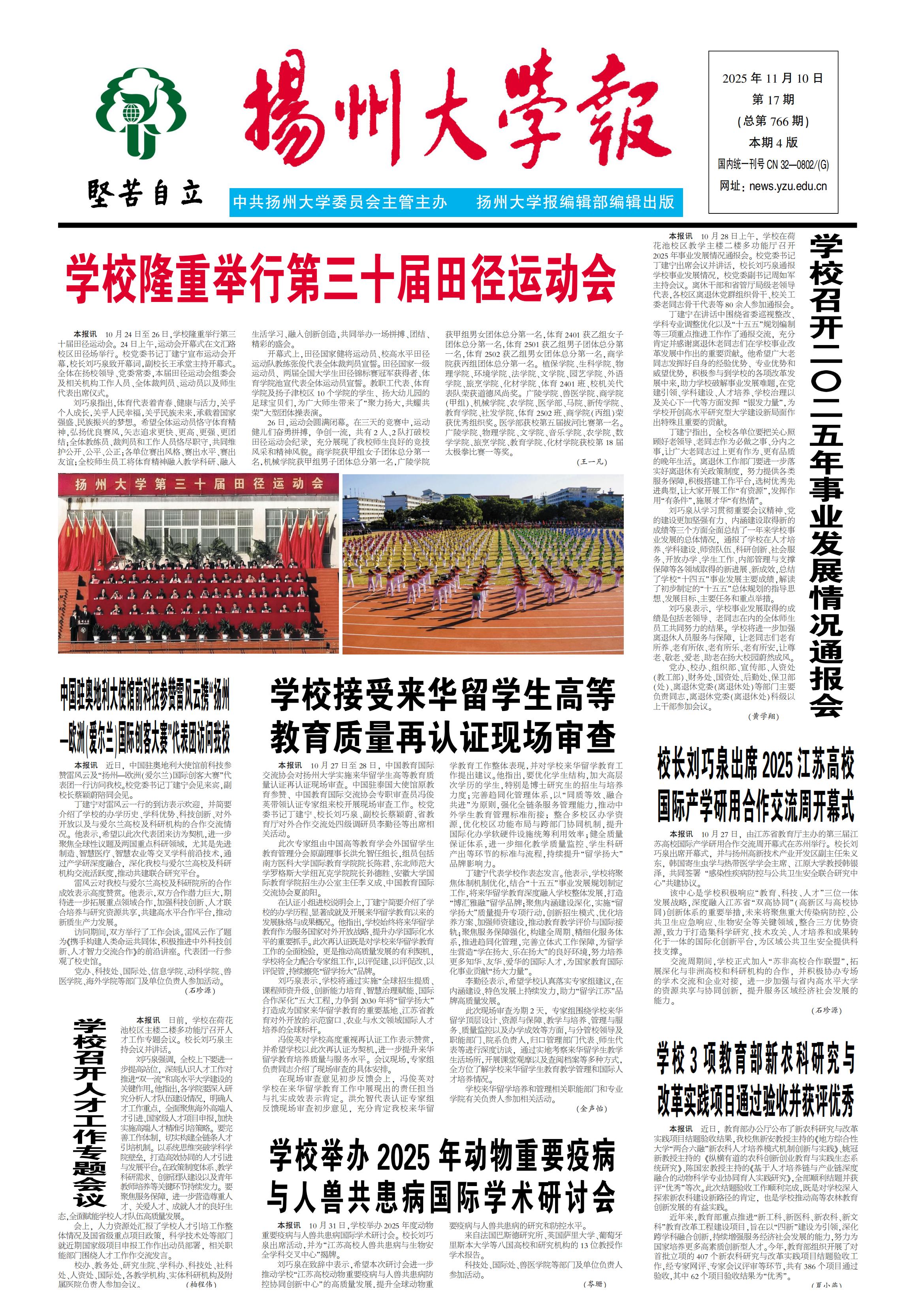 《扬州大学报》第766期(2025年11月10日)